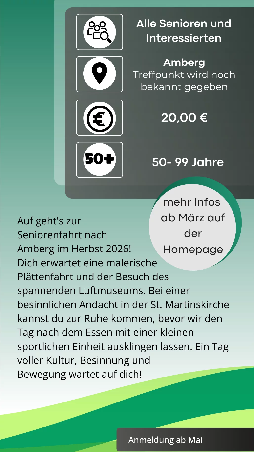 Ich lade euch herzlich ein, an unseren vielfältigen Angeboten teilzunehmen. Ob ihr sportlich aktiv werden oder die Gemeinschaft beim geselligen Beisammensein erleben möchtet – für jeden ist etwas dabei.
