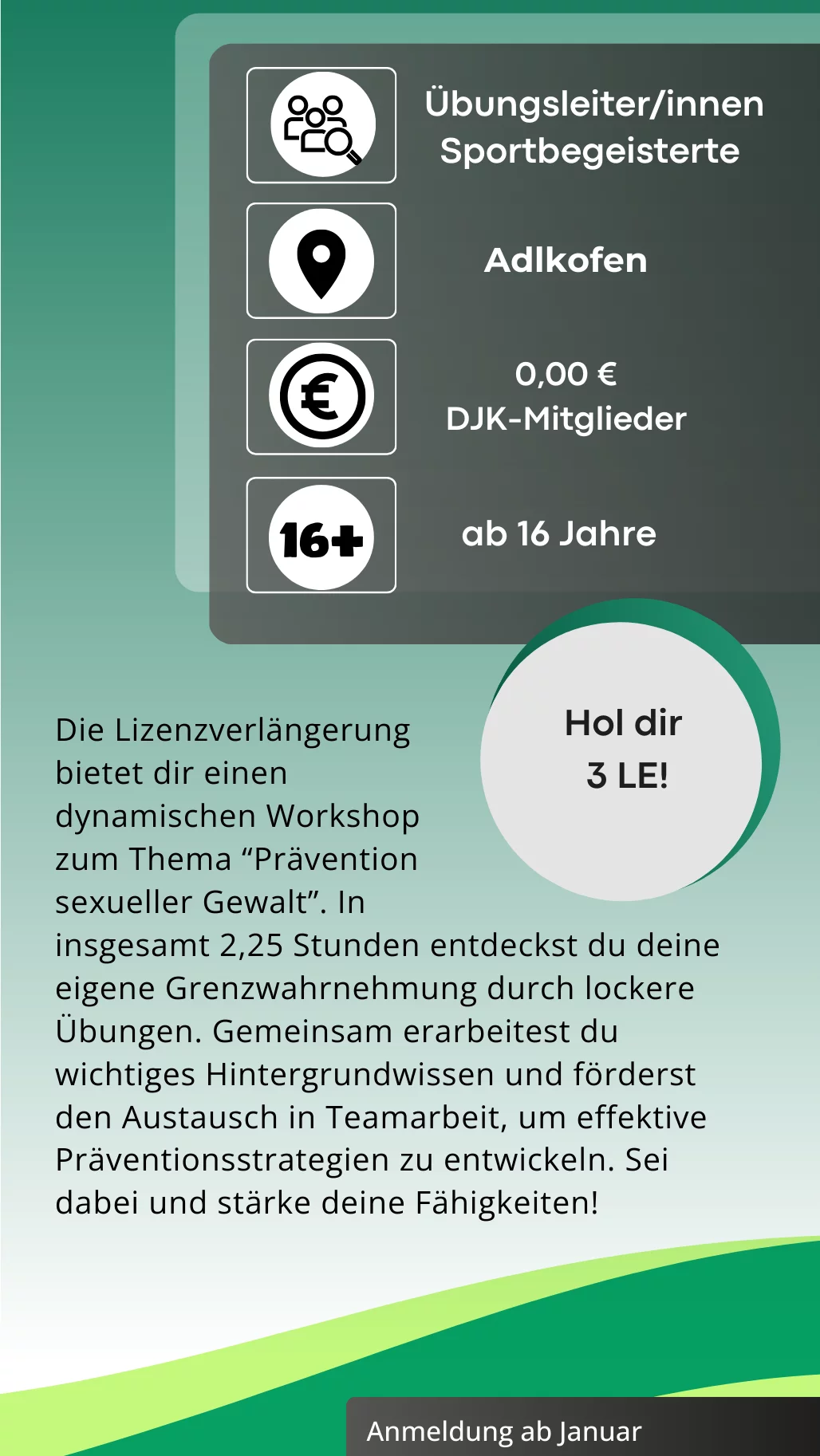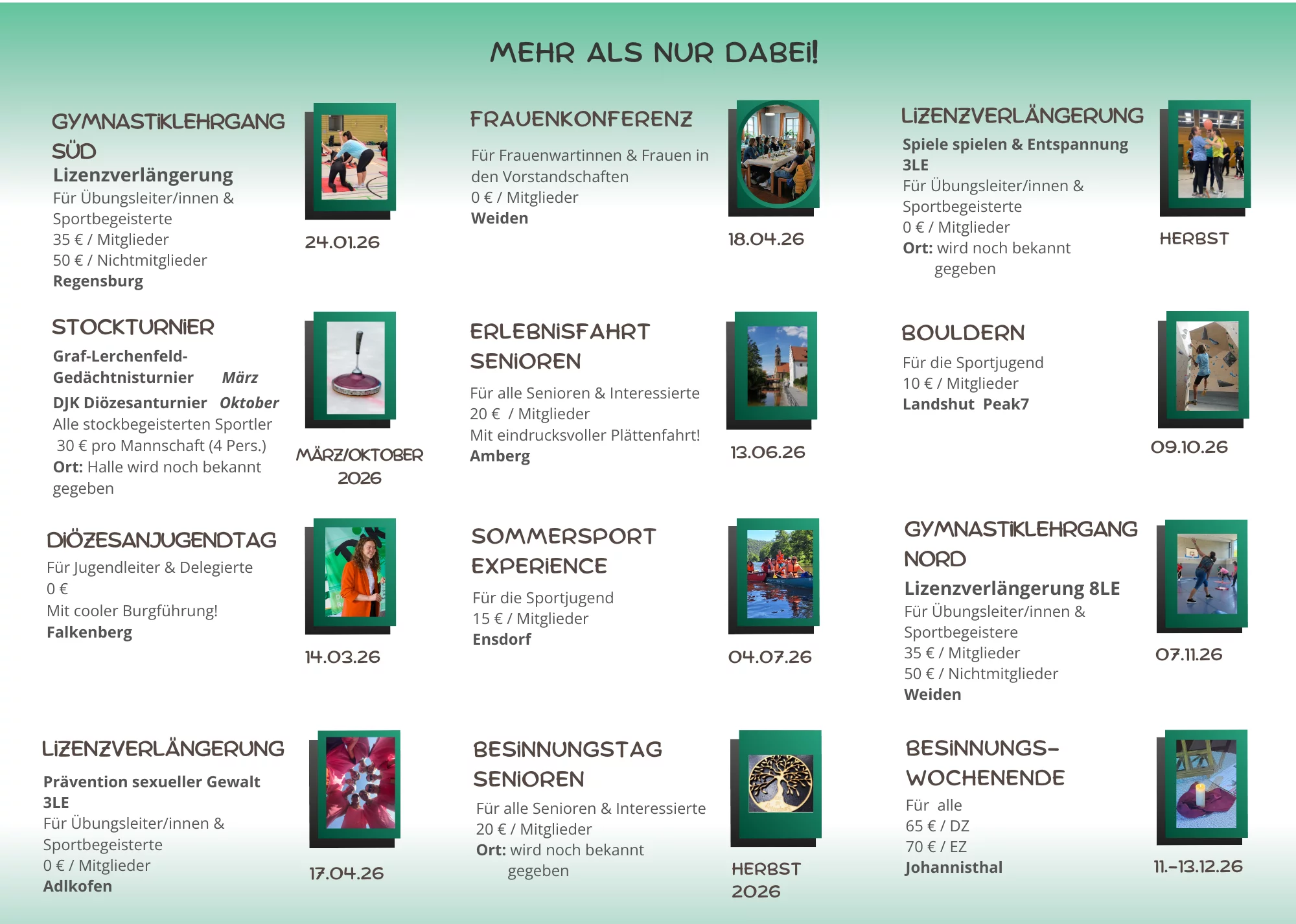 Unter dem Motto „Gemeinsam aktiv – Sport begeistert“ erwartet euch ein spannendes Jahr voller Aktionen, die die drei DJK-Säulen Sport, Gemeinschaft und Glauben in den Mittelpunkt stellen.