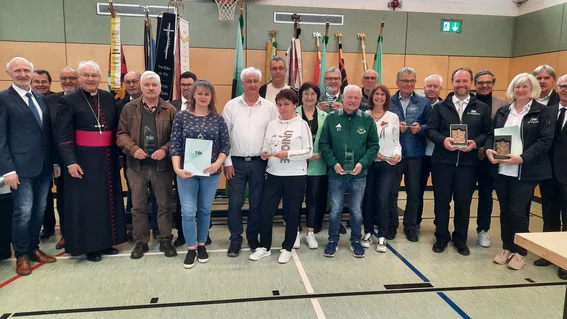 Danach wurden Cornelia Bink und Wolfgang Gmeiner mit dem Ehrenzeichen in Bronze für ihre Tätigkeit auf Diözesanebene ausgezeichnet. Markus Kellner wurde das Ludwig Wolker Relief für seine langjährigen Verdienste als Diözesankassierer verliehen. Zu ihrem Abschied aus der Diözesanvorstandschaft nach 18. Jahren als Frauenwartin, wurde Irmengard Ottl ebenfalls mit dem Ludwig Wolker Relief ausgezeichnet. Rupert Aigner wurde zu seinem Ausscheiden nach 21 jähriger Tätigkeit als stellvertretender Diözesanvorsitzender mit dem Carl Mostertsrelief geehrt. In einer feierlichen Übergabe überreichte H.H. Bischof Vorderholzer persöhnlich die Auszeichnungen an die zu Ehrenden.